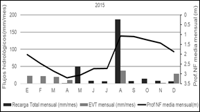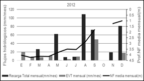 Los meses de marzo a agosto (la estación más fría del año) el nivel freático tiende a ascender y la recarga total media mensual presenta los mayores valores del año (Figura 6).