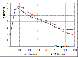 Se ha realizado la calibración preliminar considerando un evento extraordinario ocurrido el 15 de enero de 2017, Los resultados son satisfactorios, en términos del ajuste en alturas de agua y caudales en una sección interna de la cuenca, a partir de la comparación con datos relevados por la Subsecretaría de Recursos Hídricos de la Nación.