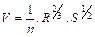 donde Q es el caudal de agua (m3.s-1), A es el área de la sección del flujo de agua (m2), V es la velocidad de flujo (m.s-1), n es el Coeficiente de rugosidad, R es el radio hidráulico (m) y S es la pendiente de la tubería (m.m-1).